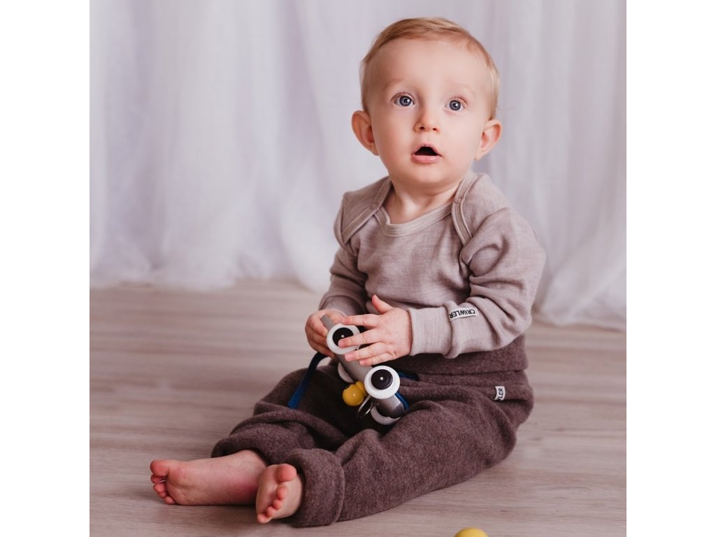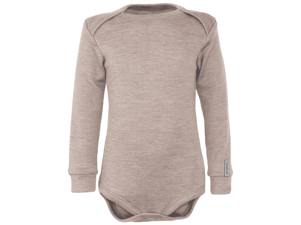 Rostoucí merino body dlouhý rukáv dětské Oříškový melír