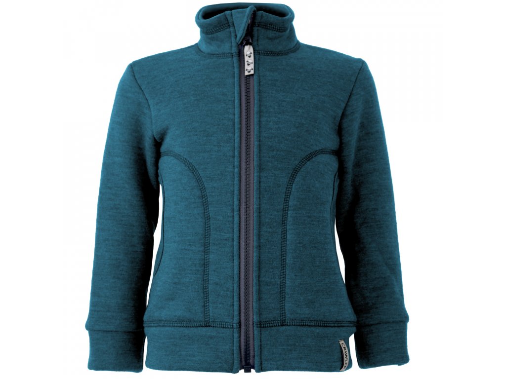 Merino mikina na zip se stojáčkem a kapsami dětská 100% merino teplákovina Petrolejový melír