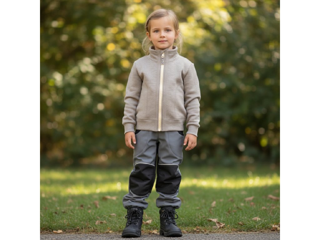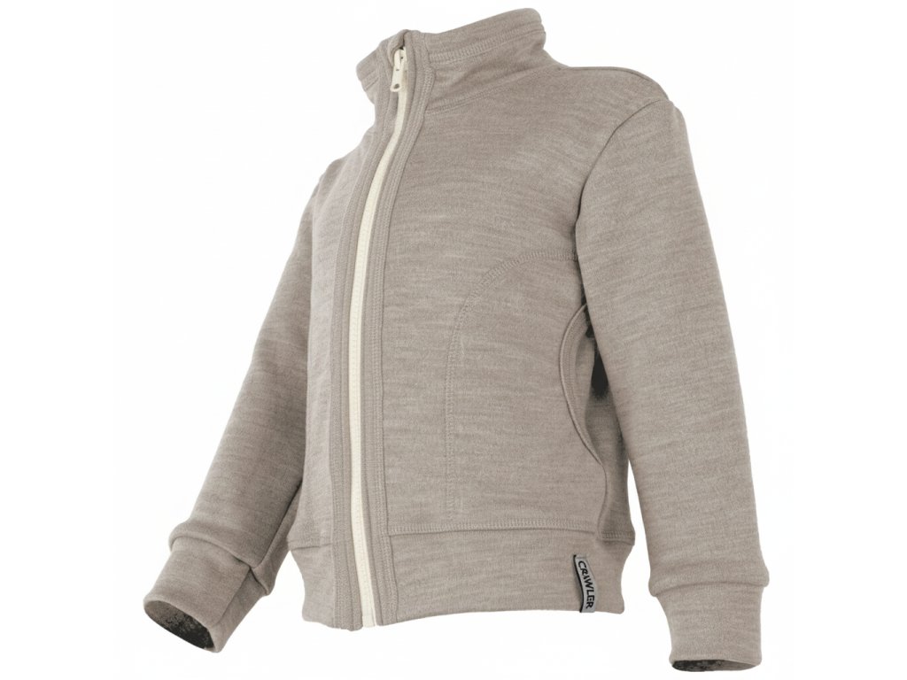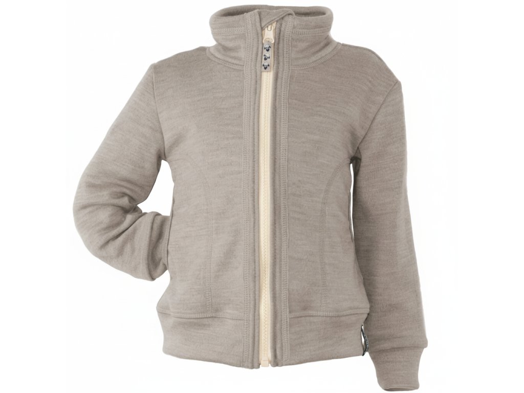 Merino mikina na zip se stojáčkem a kapsami dětská Oříškový melír