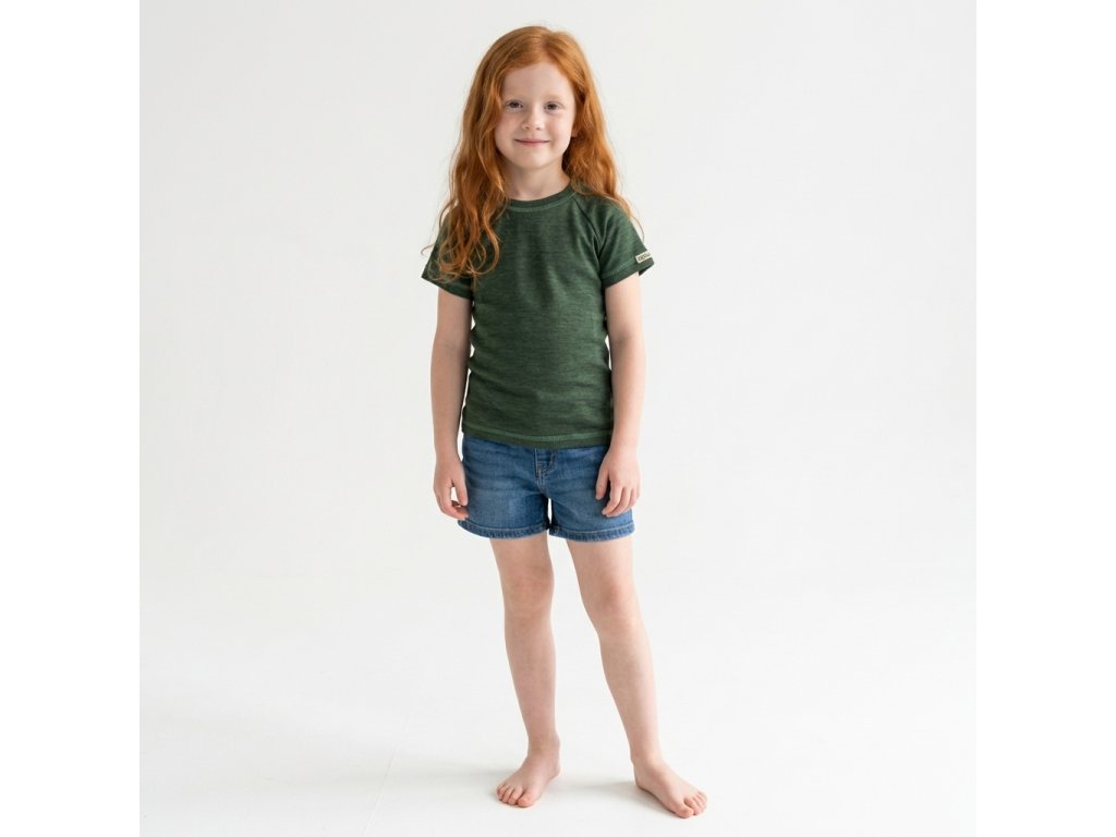 Dětské merino tričko v barvě Tmavá olivová ze 100% tenké mulesing free merino vlny je univerzální a funkční kousek pro každodenní nošení. Jemná merino vlna je přirozeně prodyšná, termoregulační a šetrná k citlivé dětské pokožce, takže se děti cítí pohodlně v různých teplotách.