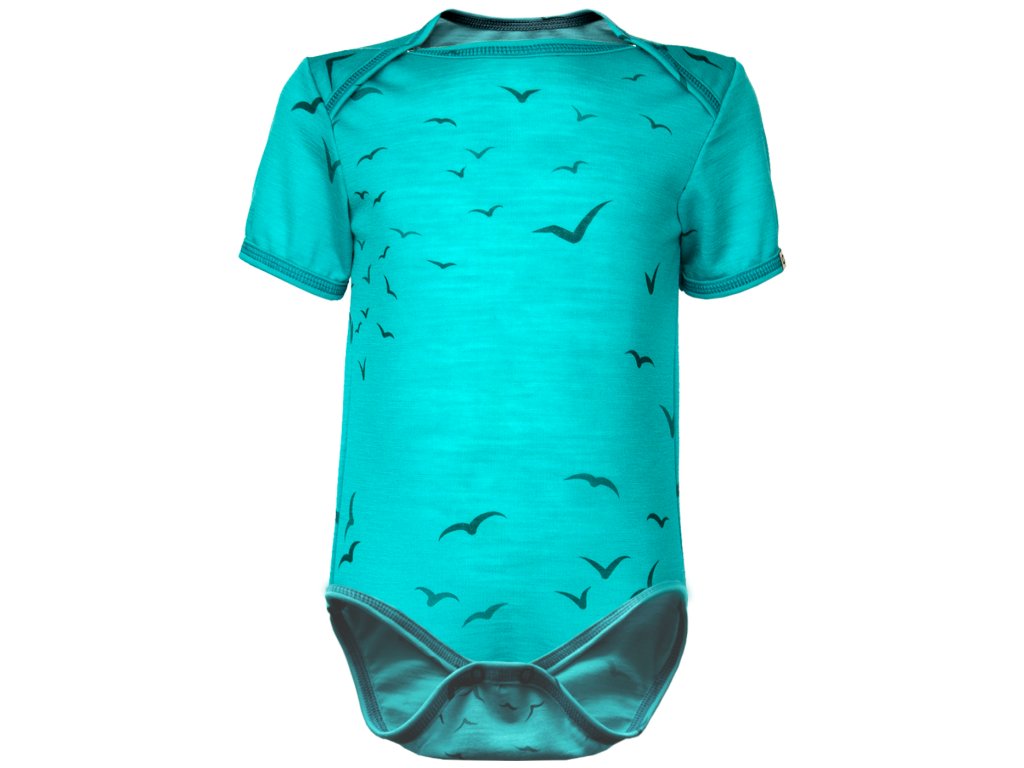 Rostoucí merino body krátký rukáv tenké dětské Ptáci
