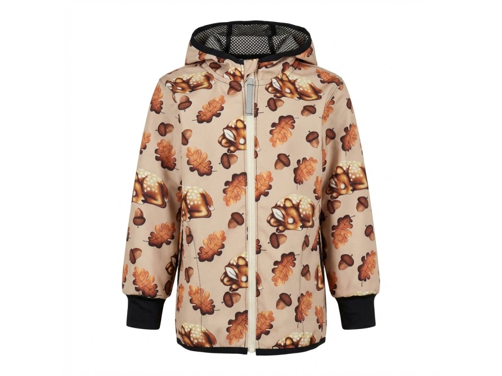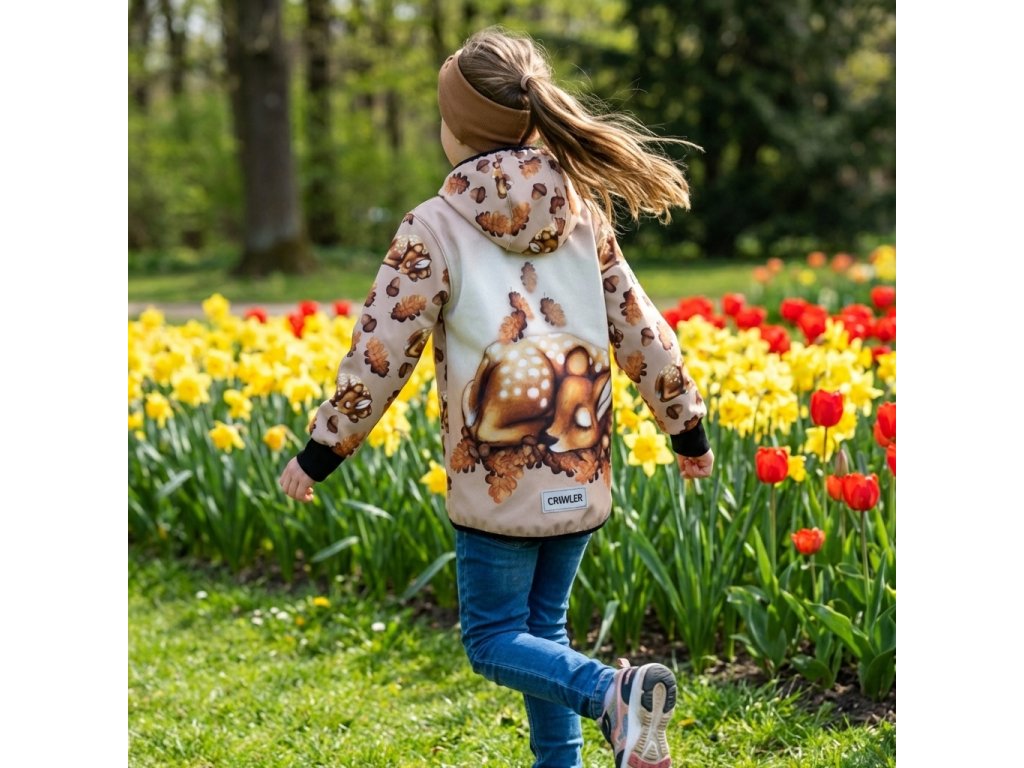 Tahle nezateplená softshellová bunda v autorském vzoru koloušek je přesně ten kousek, co zvládne hřiště, školku i výlet, když je mokro, fouká a nikomu se nechce řešit, že je všechno hned durch.