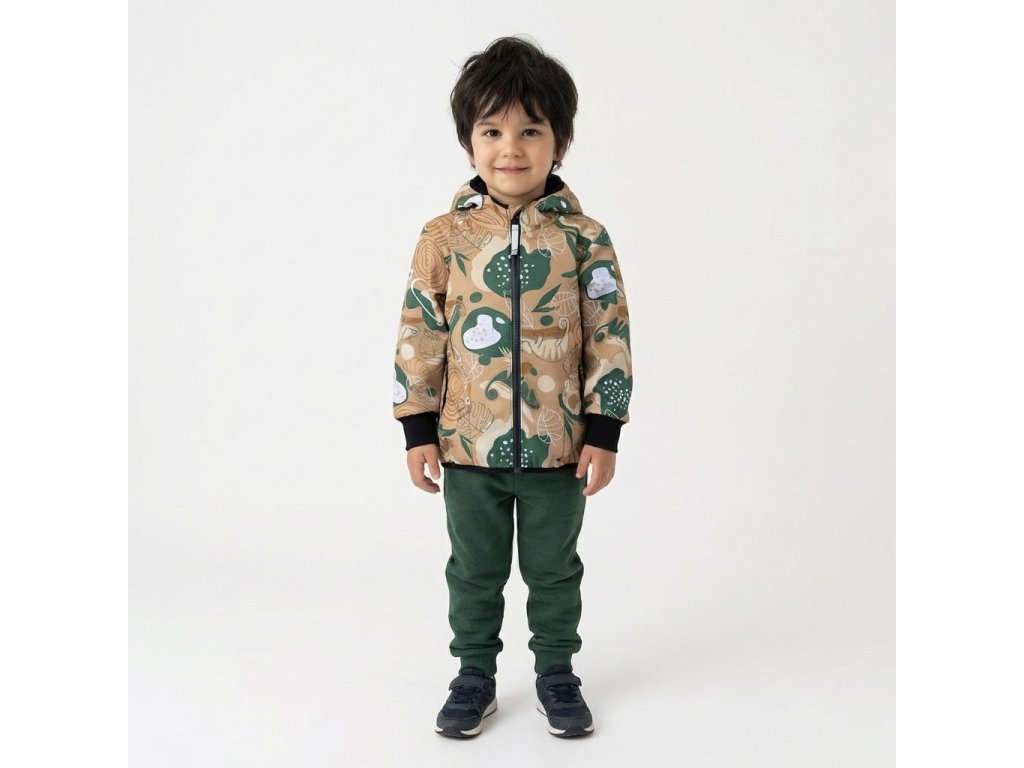 Tahle dětská softshellka není jen o vzhledu (i když ten fakt baví!) – její maskáčovo-džunglový look s chameleony, listy a přírodními motivy z ní dělá top volbu pro malé dobrodruhy. Ale hlavně: bunda má špičkový softshell s parametry 18 000 mm vodního sloupce a prodyšností 12 000 g/m²/24h – takže se v ní dítě nezapaří, a zároveň se nemusíš bát, že promokne.